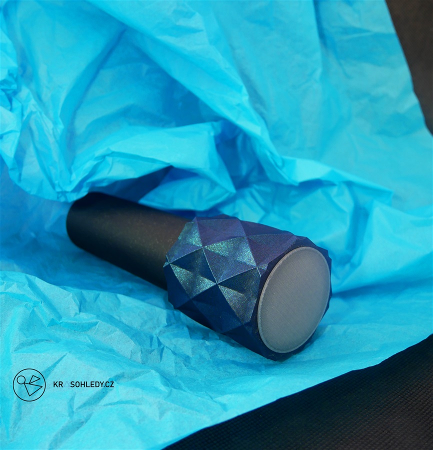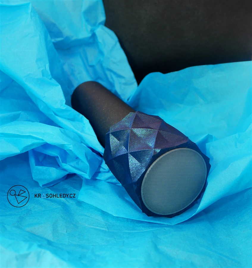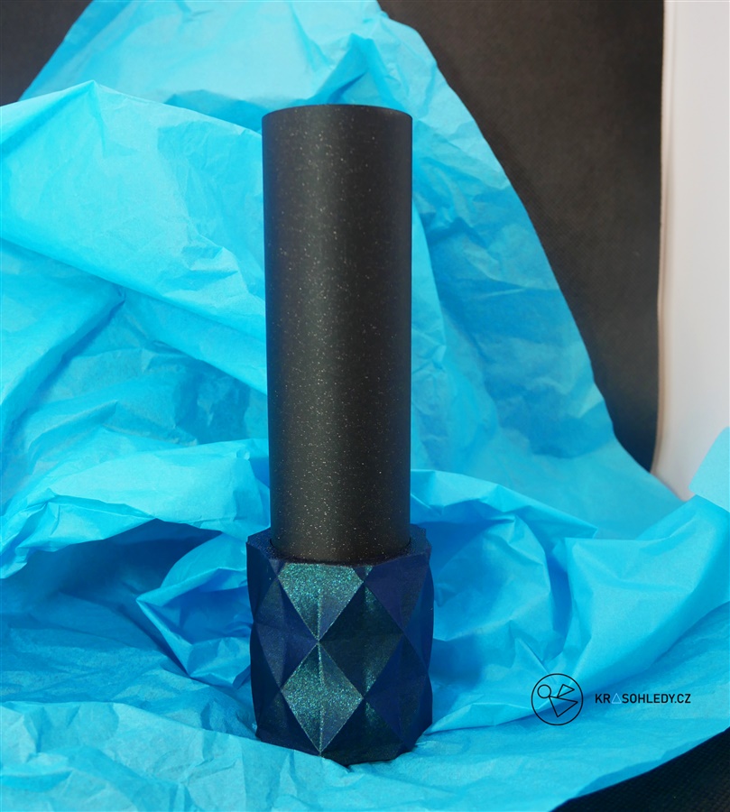 Deep space je krasohled klasický. Otočná koncovka je vytvořena z krásného tmavého filamentu, kterým prosvítají dálné galaxie v podobě lesklých glitrů v modrých tónech a černého těla, temnějšího než černá díra.